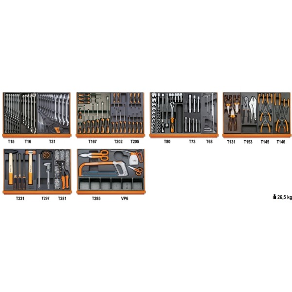 Assortment of 142 tools in thermoformed tray