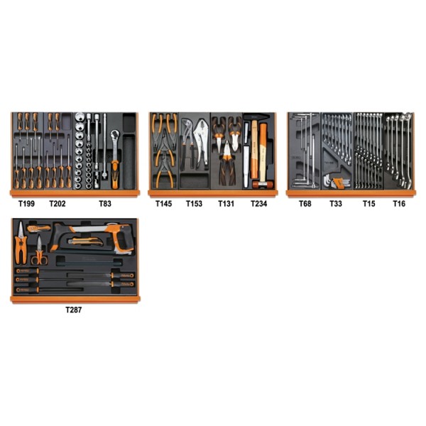 Assortment of 104 tools in foam trays