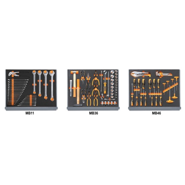 Assortment of 98 tools for tool chest C35, in soft foam trays