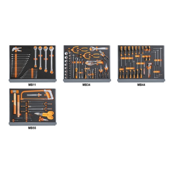 Assortment of 133 tools for tool chest C35, in soft foam trays