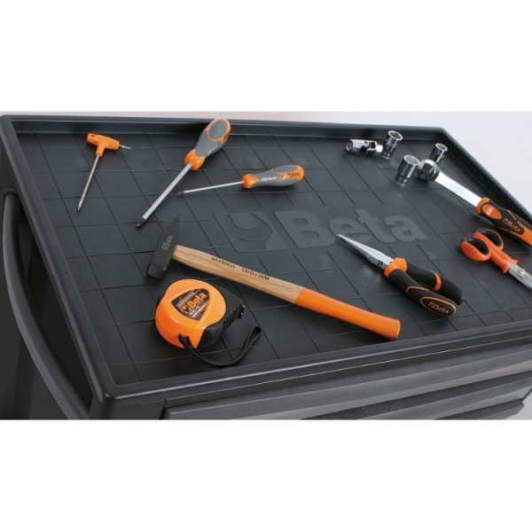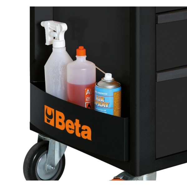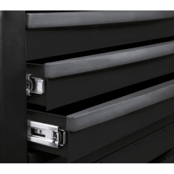 Main features: • 7 drawers, 588x367 mm, with ball bearing slides: 5 drawers, 70 mm high 1 drawer, 140 mm high 1 drawer, 210 mm high • Drawer bases protected by foamed rubber mats. • Four castors Ø 125 mm: 2 fixed and 2 steering (one with brake). • Front centralized safety lock. • Static load capacity: 800 kg. • Thermoplastic worktop designed to match tool chests C22S, C23S, C23SC and C23ST • Integrated side bottle holder. • Paper roll holder item 2400S-R/PC can also be included.