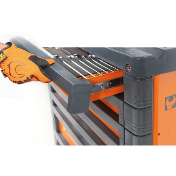 • Quick release system made of fibreglass-reinforced nylon, opening throughout length of drawer.