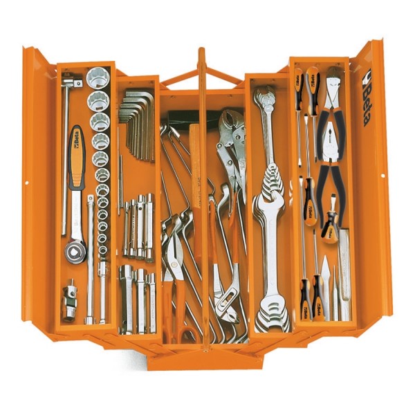 Five-section cantilever tool box, made from sheet metal