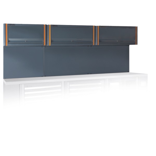 3 suspended cabinets fitted with gas springs, making it easier to open and close doors • Wall panel can accommodate perforated tool panels C55/3PF (to be ordered separately) • Supplied with framework to match workbenches